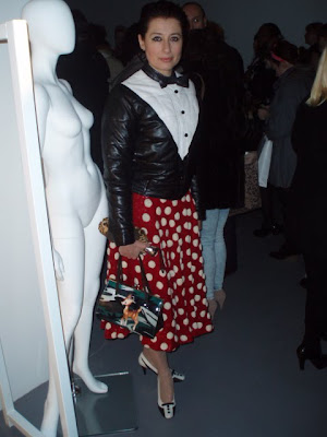 Here's Lida. I met her in the queue for the Charlie Le Mindu show and couldn't keep my eyes off her unique tuxedo leather jacket (how cute is the bow tie?) and the red and white polka dot sequined skirt. She was, naturally, in head to toe Ashish. In fact, she is friends with the designer and the jacket, she told me, was a one off, especially for her. Lucky girl!! The adorable Bambi bag added more individuality to the already uber-cool outfit.