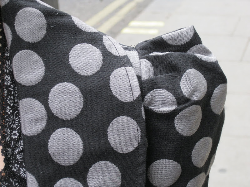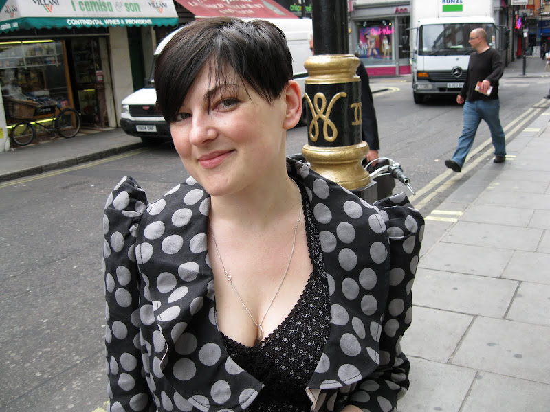 The first is the lovely lady in the statement shoulder polka dot coat (ooo two trends in one, well done you!). As she walked towards me it reminded me of something Leigh Bowery might of worn (separate blog post me thinks!). It was amaze. AND it was high street...£40 in the Miss Selfridge sale!