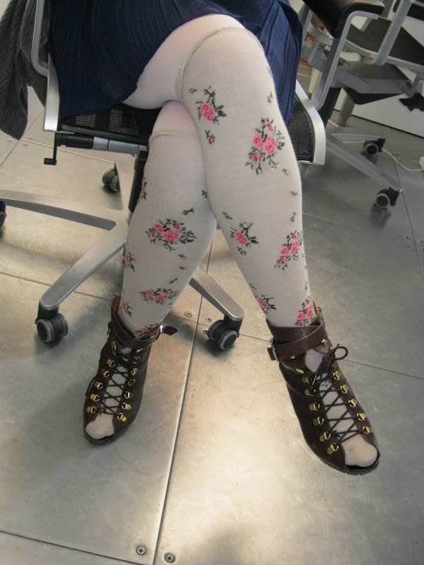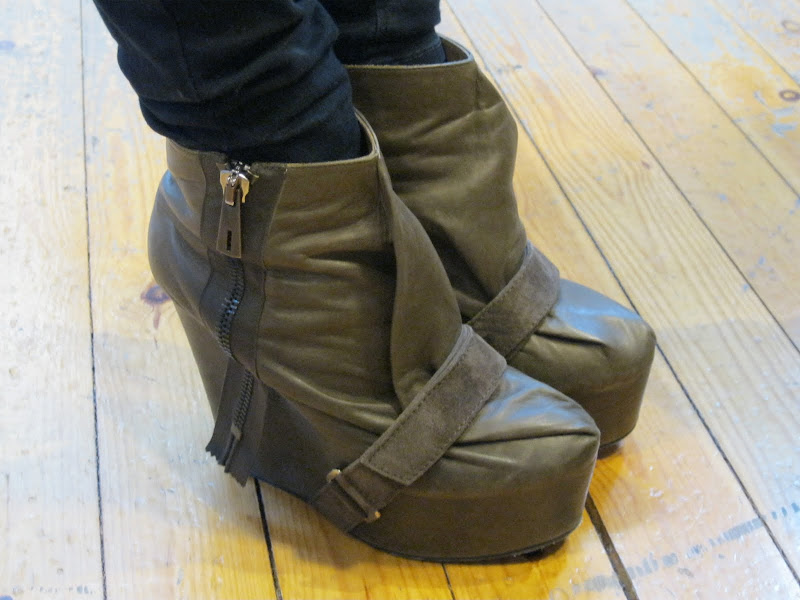 Whilst out and about I spotted these amazing heels. Thanks to those London girls who wear heels during the day, I love ya! These are Acne's gorge bondage wedges - thanks Steph! Urban Outfitters lace up peep toes - thanks Stevie B! (you can tell she's an amaze stylist, those socks are to die for!) Chanel clog beauties! - thanks fierce girl on the street! Show 1 comment