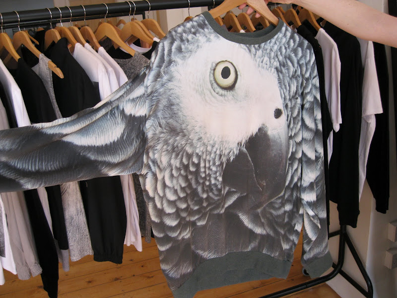 Their AW10 collection is all about the mystical world of their porcelain doll collection which were rescued from a WW2 German factory. It's all about the doll's eyes, their ambiguity. With that inspiration comes tees printed with female figures and my favourite, printed rhinos and parrots onto silk.