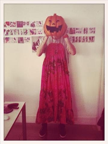 And this one. It's actually me behind the pumpkin head and bad maxi dress. We were bored in the office one day last week and one of the designers had bought this dress for a project he was doing. I said how awful it was and he suggest I showed you all how bad it actually looked. So this is me, showing you how NOT to do a maxi, especially with black high tops. LOL