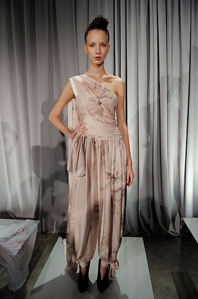 Tulle, chiffon, lace, spider-web detailing and laser-cutting - all in one breath for Marchesa. Huge skirts on romantic gowns, draping on shorter dresses and evening harem jumpsuits, hand-painted wonders that resembled a stare-for-hours work of art and stiffened shapes that can only be described as Marchesa Magic.