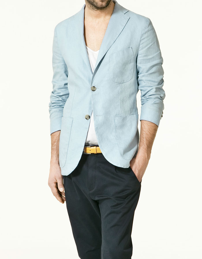 Skinted - above: Zara's pale blue linen blazer, £89.99