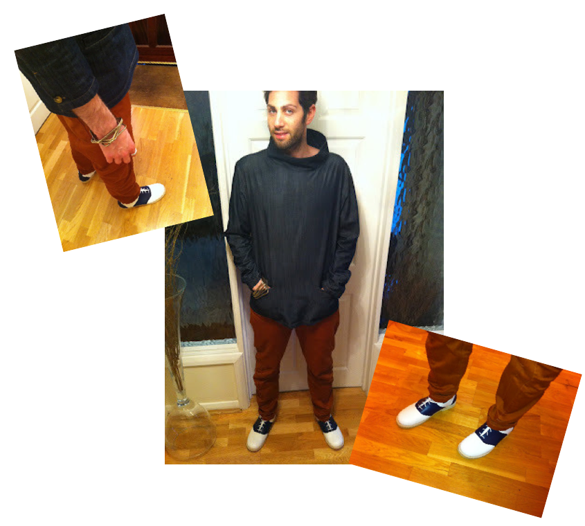 The two-tone design of the Saddle shoe means you can literally team them with anything! Here I'm wearing coloured chinos and a denim shirt.