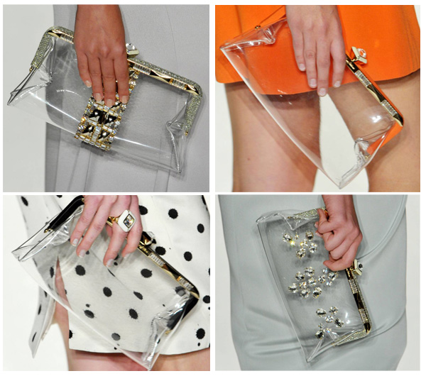 ... these OMGorgeous clear perspex bags from Jenny Packham's new Spring Summer 2013 collection. Could a clutch actually get any better than this?? Image source: www.bagsnob.com Leave a comment